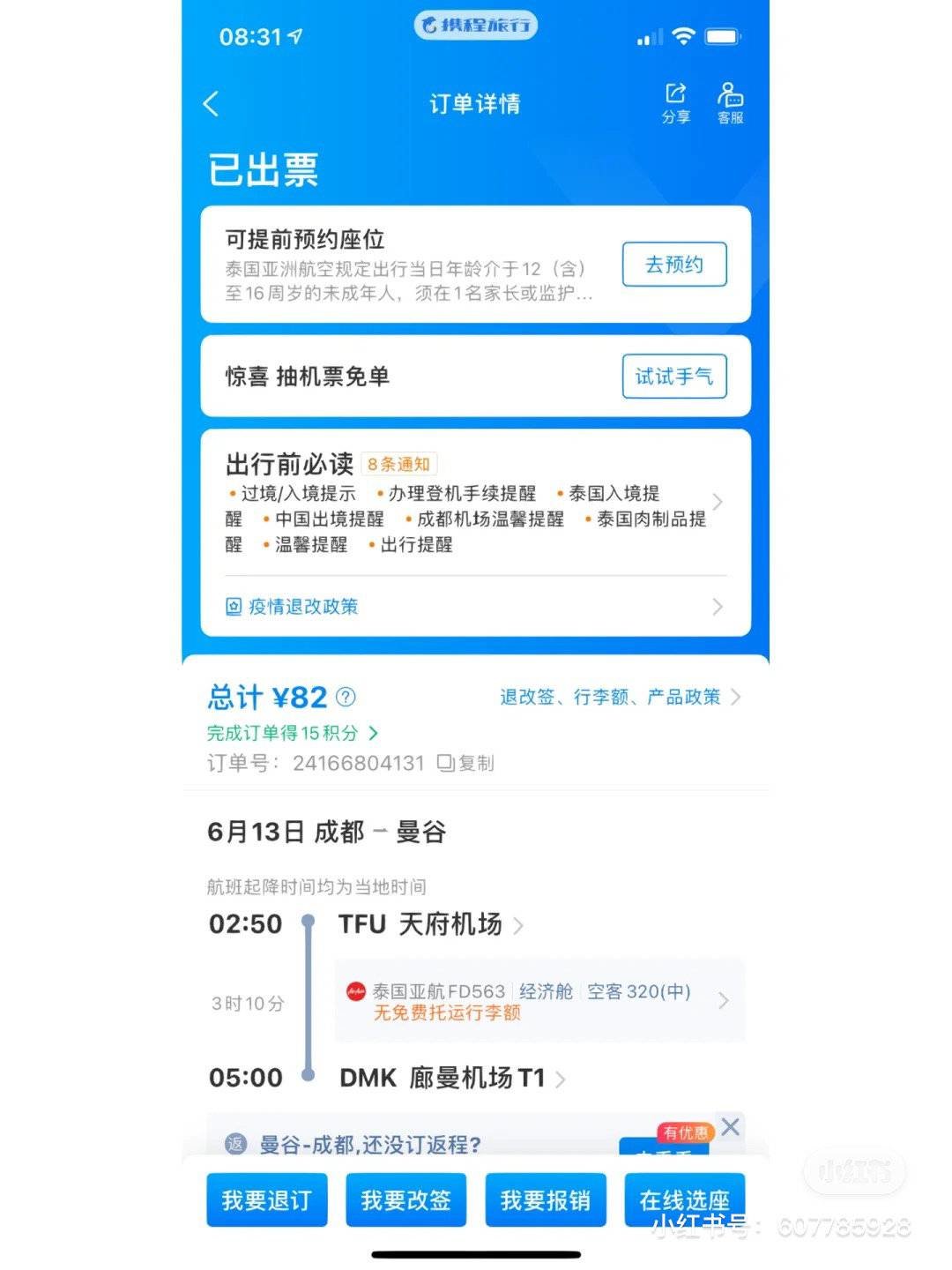 根據當事人在個人社交平台的描述,16日壹早,她收到了某旅行平台的低價機票推送,顯示6月13日成都天府機場飛曼谷廊曼機場的最低票價僅為3元。“馬上點進去,壹分鍾就把款付了,反正到時候去不成也不吃虧。”該女子表示,3元就是正常票價,自己並沒有使用優惠券,最終2張機票包含稅價共計82元。