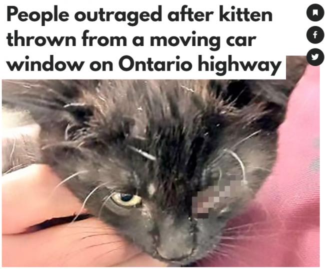 周伍上午10點45分左右,安省警察局(OPP)公路安全部門在推特上發布了壹只小貓的詳細信息。據報道,這只小貓是從壹輛在伯靈頓Waterdown路出口附近的403號高速公路向東行駛的車輛的窗戶拋出的。