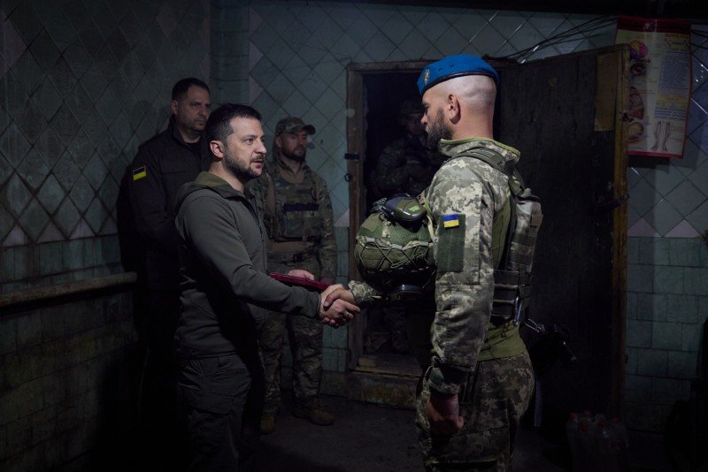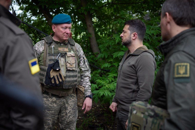 據烏克蘭國家通訊社報道,當地時間23日,烏克蘭總統澤連斯基在結束對日本(专题)的訪問後前往頓涅茨克前線地區,與那裡的烏軍海軍陸戰隊員壹起慶祝“海軍陸戰隊日”。