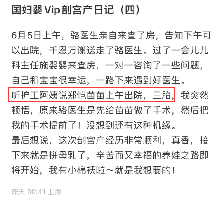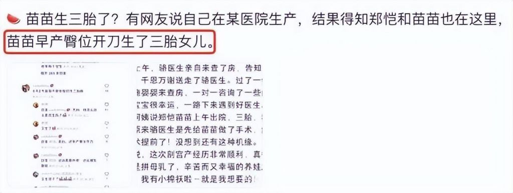 最近有兩條新聞直接讓人摸不著頭腦,就在今年的6月10號,有女網友在社交媒體上分享了自己生孩子的經歷,不過這段經歷本身並不算吸引人,最吸引人的是在這篇文章中,提到了明星夫婦鄭愷和苗苗。