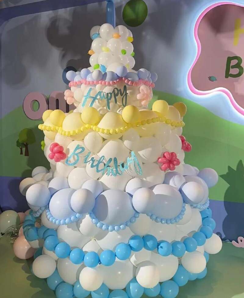 周歲宴現場布置既溫馨又充滿童趣,主辦方還為小家伙用氣球制作了個生日蛋糕,其他地方擺放得有鮮花展牌,桌子上還有美味佳肴,壹家人合照後,就能直接坐下用餐。