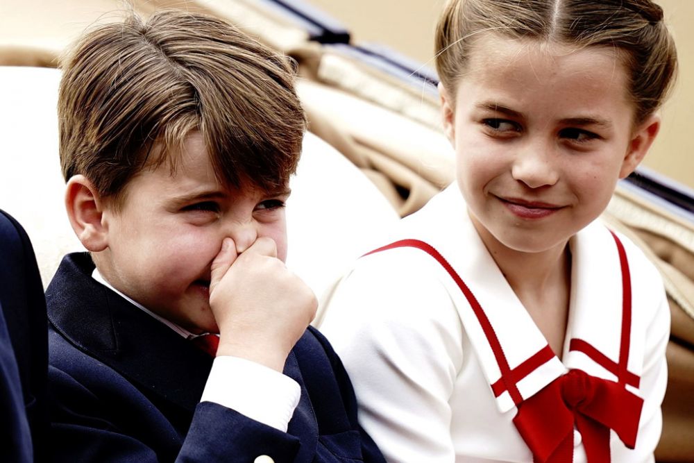 當天稍早,小路易與哥哥喬治、姊姊夏綠蒂及母親凱特搭乘馬車前往皇家騎兵營閱兵場(Horse Guards Parade)時,也被拍到用右手捂住鼻子、嘴巴的逗趣模樣,疑似聞到了馬匹糞便的臭味。