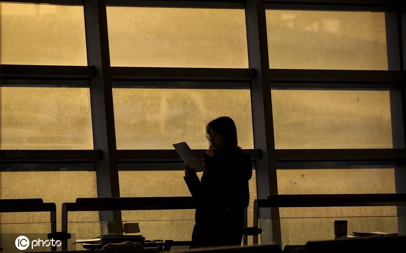 2022年12月6日,江蘇淮安,准備參加考研的學生在淮陰師范學院自習室復習。