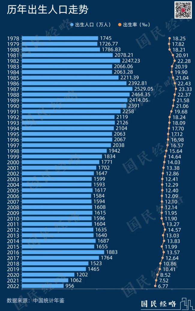 自1990年代以來,人口出生率呈現下降趨勢,直到2010年代在全面贰孩、叁孩政策的帶動下才有所回升。