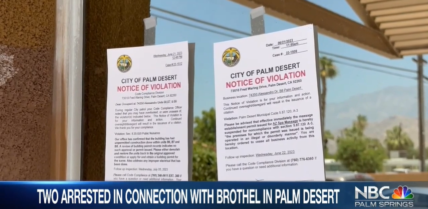 據河濱縣警方表示,他們自去年以來壹直收到關於該地點的匿名指控,目前尚不清楚這是否涉及人口販運案件,不過在加州經營妓院已經屬於非法行為。