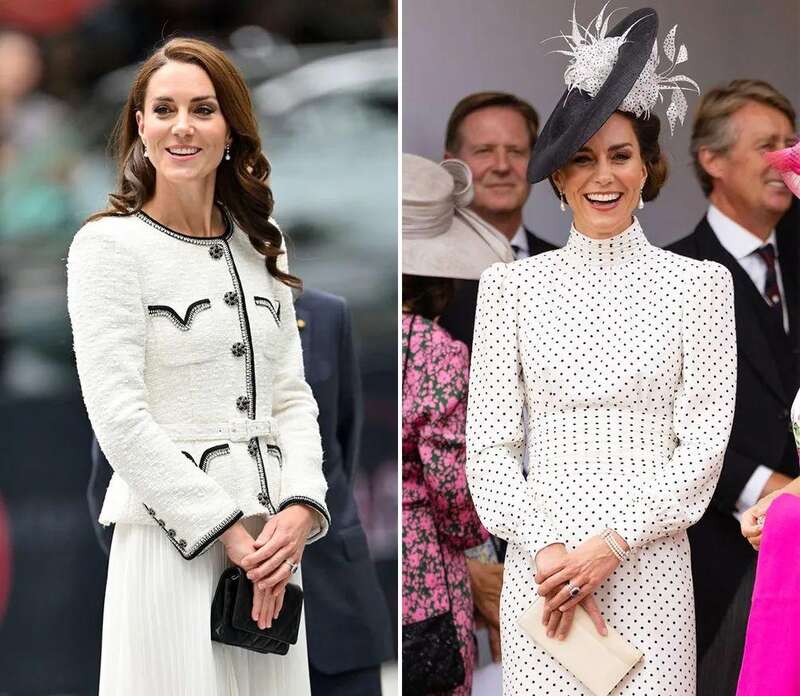 兩身白色裙裝Look也美出圈兒。壹套是出席嘉德勳章日的Self-Portrait,壹套是復古波點風的Alessandra Rich,依舊可圈可點~