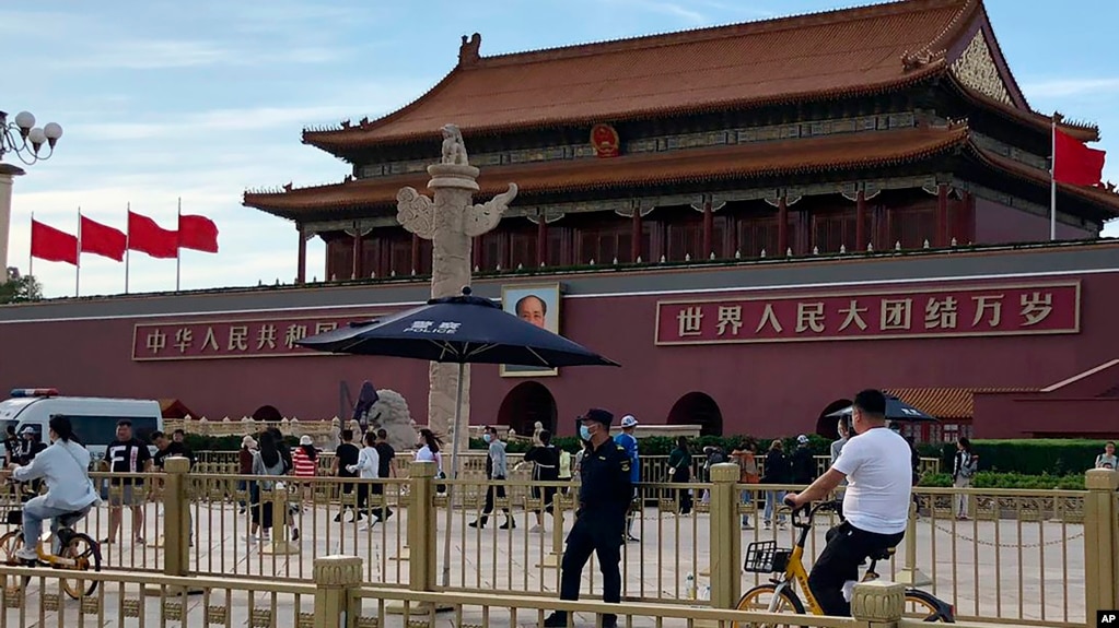 資料照片:北京天安門前壹名安全人員在監視過往居民。(2023年6月4日)- 新聞來源於其它媒體,內容不代表本站立場!