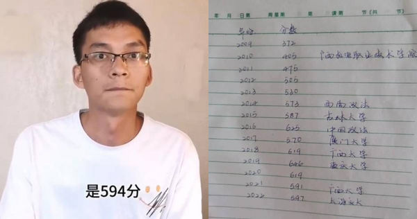 34歲男子唐尚珺高中讀了17年,壹共參加15次高考,日前通過自己的社交帳號發布視頻稱今年他高考分數是594分,“讀了17年的高中,今年也是決定去讀大學了”,並透露最近為填志願苦惱,大概率會往師范類方向去選,“我個人認知有局限性,所以填志願和選專業,我還是希望得到大家壹些指點和幫助”。