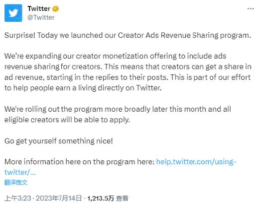 財聯社 7 月 14 日訊 面對社區內部動蕩和扎克伯格的步步緊逼,全球首富馬斯克麾下推特在本周宣布:向頭部內容創作者分享廣告分成!