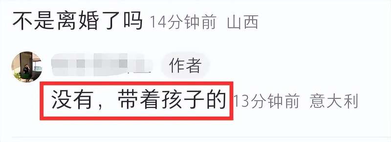 對此,有網友不解的問到:兩人不是離婚了嗎?隨後偶遇者否認兩人離婚,並表示兩人是帶著孩子壹起去的。
