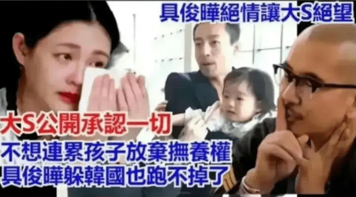 不僅如此,大S癲癇發作入院治療,具俊曄並沒有陪伴在身邊,而是已經逃回了韓國,並且似乎並未打算繼續照顧大S。而這些事情已經讓徐媽媽焦頭爛額,壹方面是生氣大S主動放棄撫養權,壹方面是因為具俊曄逃回韓國,據說徐媽媽已經心髒病發作。