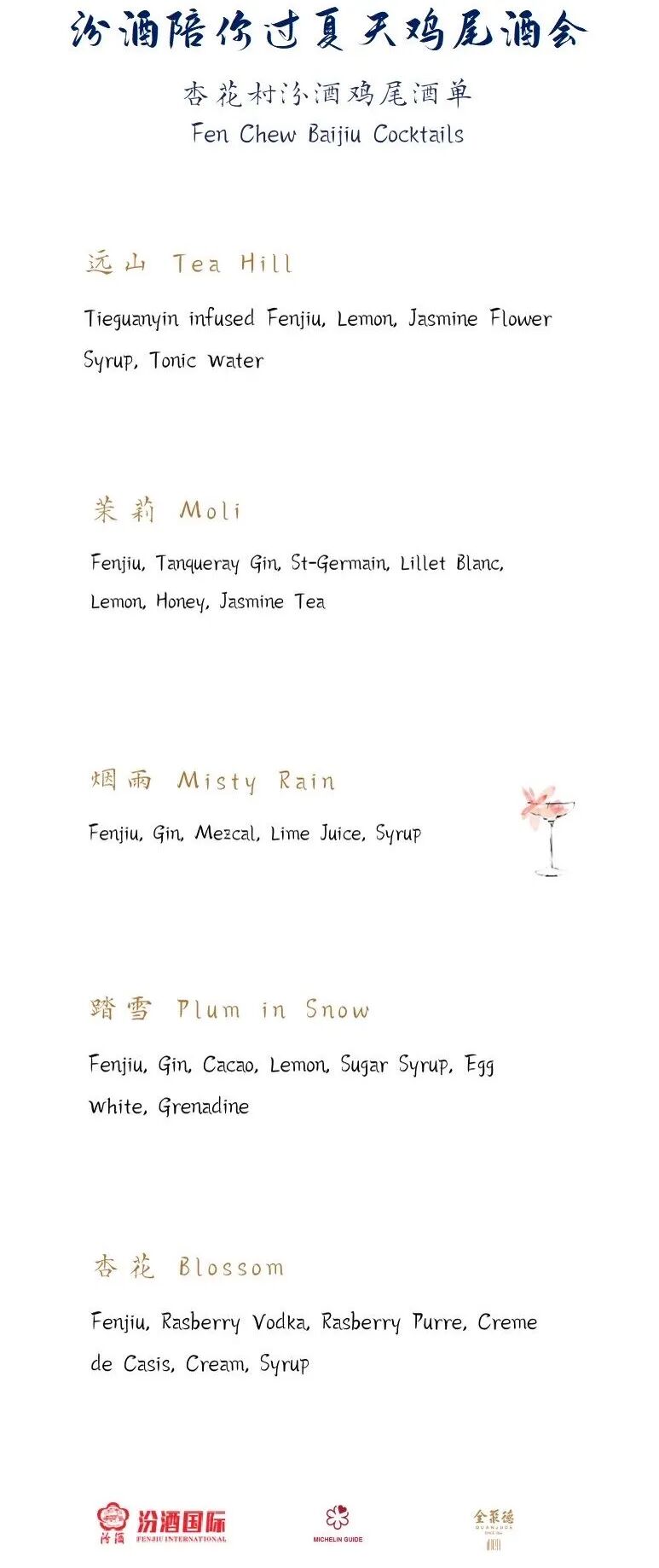 2023年7月14日,由汾酒国际主办的“汾酒陪你过夏天”鸡尾酒会在加拿大唯一米其林星级中餐厅全聚德的午间时光圆满落幕。活动当天,温哥华本地的酒文化爱好者、美食家、科技专家、媒体人士和学者共聚一堂,品尝百年陈酿“杏花村汾酒”,一起探索中西方酒文化的交流与融合。