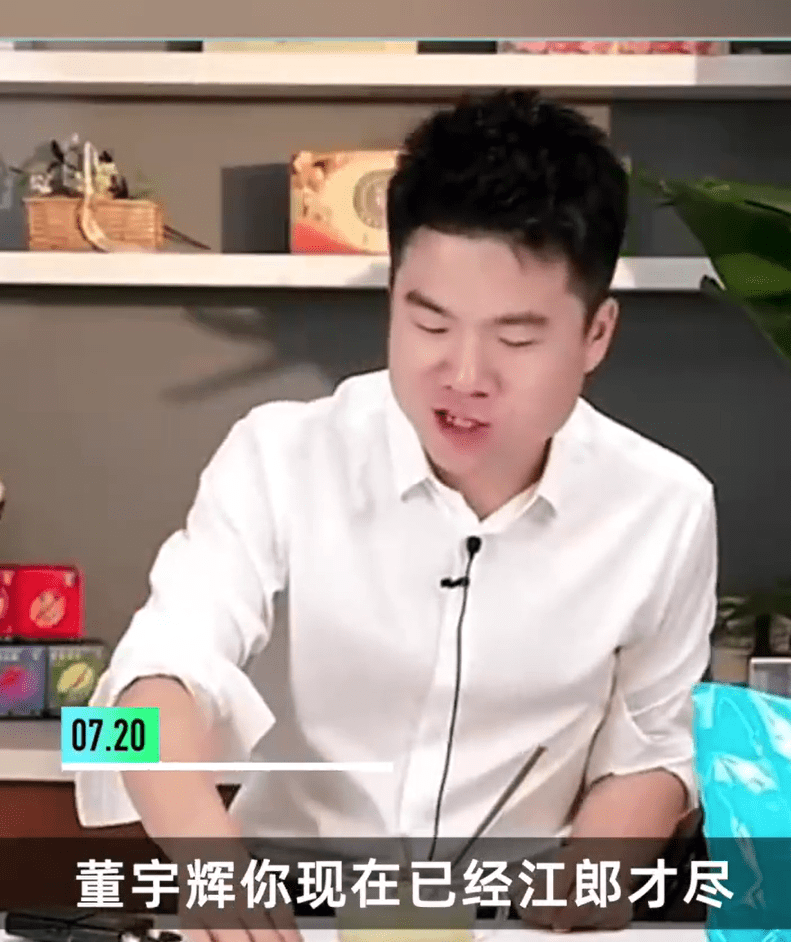 7月20日,董宇輝在東方甄選直播間說:“有朋友說董宇輝你現在已經江郎才盡,為賦新詞強說愁,我就當你是在誇我。江郎才盡的前提是啥?是曾經有才,他至少肯定了我的過去。”
