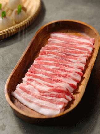 2、五花肉片洗净,用厨房纸吸干水分,撒1勺盐+1勺黑胡椒碎,腌10分钟。