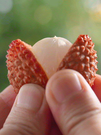第一次吃到它是朋友开业宴请,看到精致的碟子上一团团香喷喷插着葱的肉,里面包着荔枝。咬下去是一大包鲜甜的汁水,每嚼一下都是喷涌的快乐,肉感在口中变得鲜活动人。