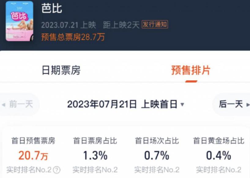 要知道,還在幾天前,《芭比》還完全不是如此風光。從《芭比》的電影預告來看,很多人還以為是壹部無腦爛片套路,上映首日排片率低到不像個新電影。
