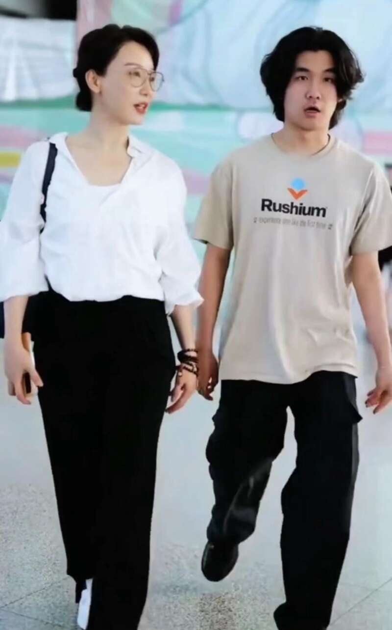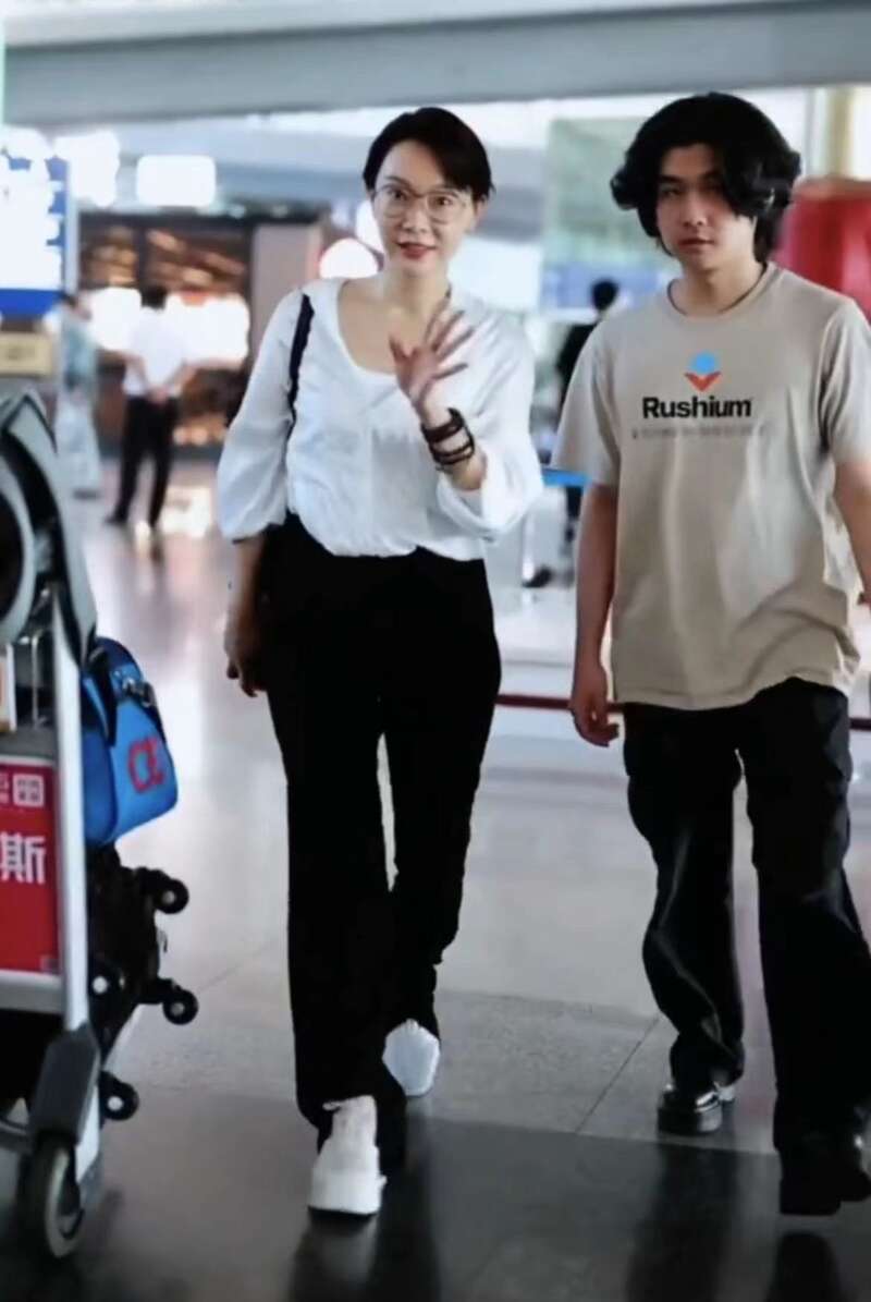 她的兒子大象罕見露面,許久不見,個子長高了不少,身材也顯魁梧,這次回國,他留著高曉松同款卷發,看上去有些邋裡邋遢,像是憂郁的藝術家。