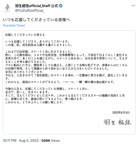 ▼記事詳細はこちらhttps://t.co/xU8JY4mYYp@YUZURUofficial_ #羽生結弦 #hanyuyuzuru #羽生結弦 — モデルプレス (@modelpress) August 4, 2023