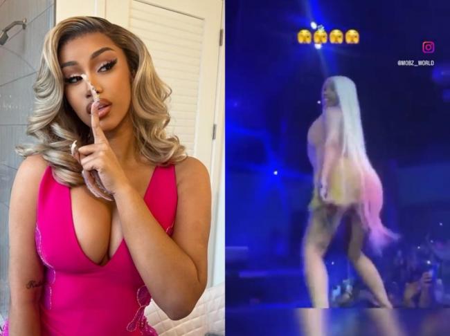 不過Cardi B的嗆辣行徑顯然沒有因為麥克風傷人事件而收斂,有網友在網絡上曝光壹段影片,她在拉斯維加斯表演時身穿連身短裙但下半身光溜溜,沒有穿內褲的她大膽地在觀眾的鏡頭下撫摸下體並熱情扭腰,同時露出衛生棉條,讓廣大網友傻眼到無言以對直呼:“太扯!”