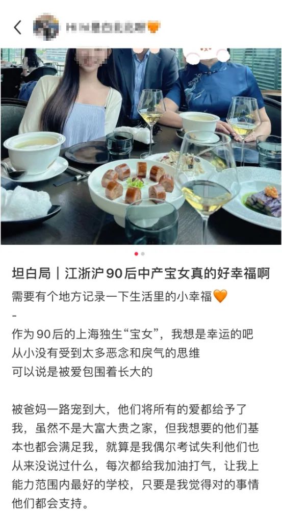 起因是一个博主自曝“江浙沪独生女”的生活: