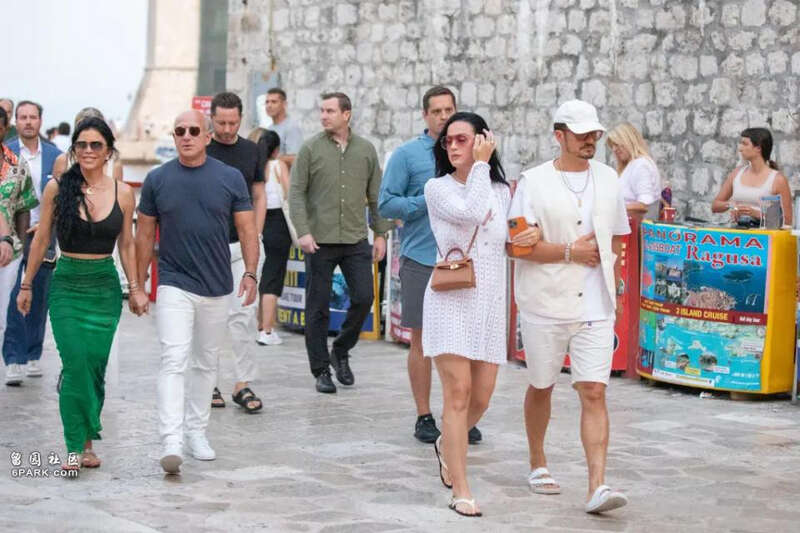 傑夫·貝索斯牽著他的未婚妻勞倫·桑切斯的手,邊漫步邊欣賞著古老的石灰牆壁,而在他們前方不遠處的,是“精靈王子”奧蘭多·布魯姆以及他的未婚妻-被昵稱為“水果姐”的凱蒂·佩裡。此外還有亞瑟小子,以及讓很多超模、女星都爭先恐後和其結交的時尚界名流德裡克·布拉斯伯格等。