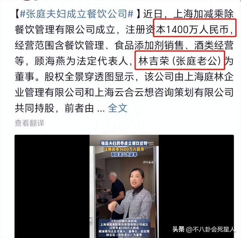 張庭夫婦被罰後 投資千萬開新公司