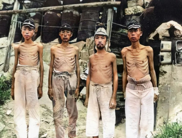在馬紹爾群島被美軍俘虜的日軍,可以看到,身材拾分瘦弱。