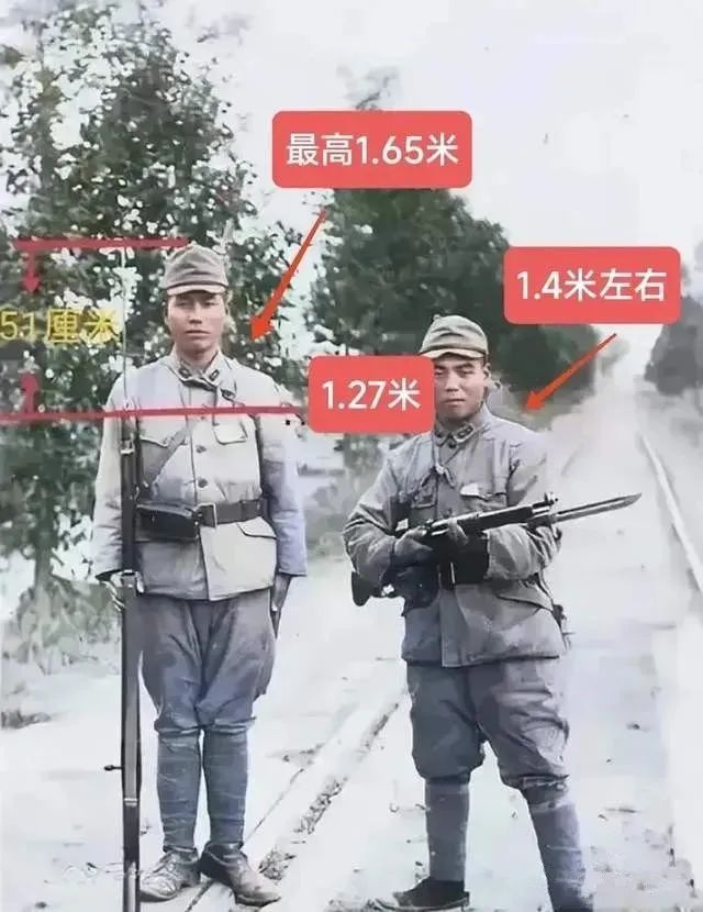 從當時日本的征兵規定也可以知道。日本當時以150厘米為身高標准對軍人劃分為甲、乙、丙、丁、戊5種類型,最高的甲種軍人主要是身體素質強而且身高超過150厘米的年輕人,換句話說1.5米以上強壯年輕人就是甲等兵。