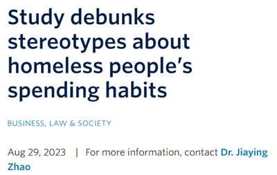 加西网报道:UBC大学今天发表了心理学华裔副教授Jiaying Zhao博士所在团队题目为《研究揭穿了对无家可归者消费习惯的刻板印象》的研究报告。