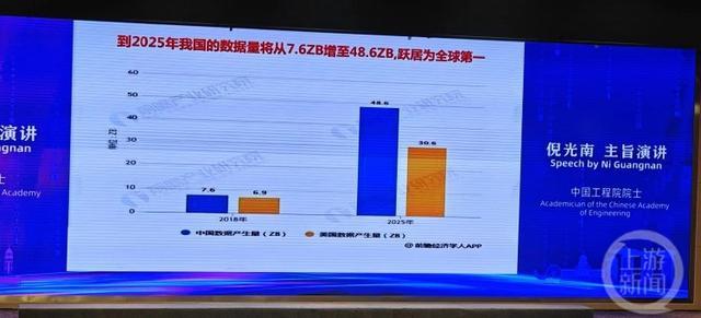 倪光南在演講中表示,中國和美國是全球最大的數據量產生國,預計到2025年,中國的數據產生量將達到48.6ZB,超越美國成為全球第壹大數據產生國。但從人均數據存儲量來看,美國是中國的9倍,中國在數據存儲計算方面仍有非常大的提升空間。