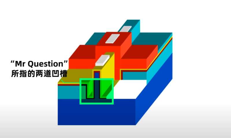他根據專利的文字描述推測,華為打算在傳統 FinFET ( 鰭式場效應晶體管 )的基礎上挖兩道凹槽,通過改良 FinFET 的結構,提升了晶體管漏電的控制能力。