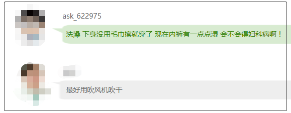 還有不具名的網絡醫生,建議網上咨詢的患者用吹風機吹幹私處再穿內褲。