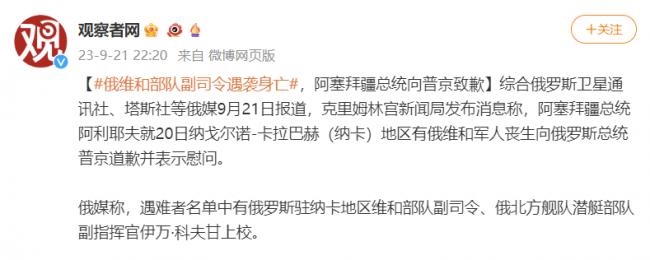 牆內自媒體隊長手記文章:據俄羅斯獨立媒體Meduza報道,9月21日,俄羅斯駐納戈爾諾-卡拉巴赫維和部隊的壹名副指揮官在阿塞拜疆對該領土的攻勢中喪生。科夫甘在擔任此職務之前是俄羅斯海軍北方艦隊潛艇支隊副支隊長。