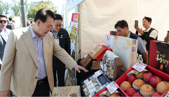 尹錫悅24日在首爾壹公園參觀中秋節前舉行的集會活動 圖自韓國SBS電視台報道配圖