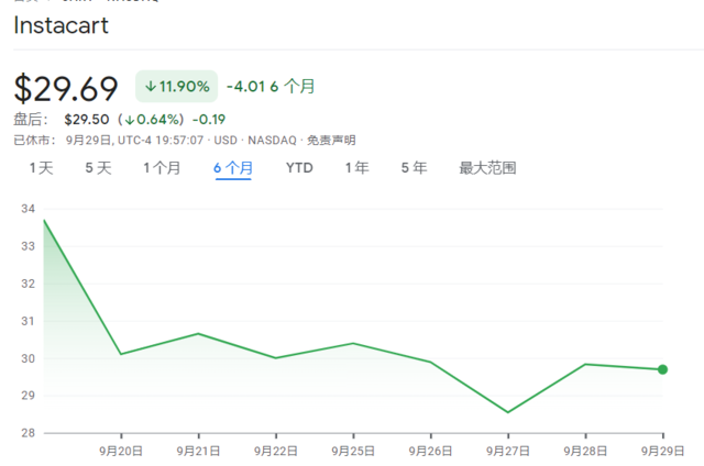 Instacart的IPO曾被視為其他未上市科技公司的關鍵晴雨表,上市首日壹度飆漲40%,但盡管如此,截至9月底其股價仍低於30美元的發行價。