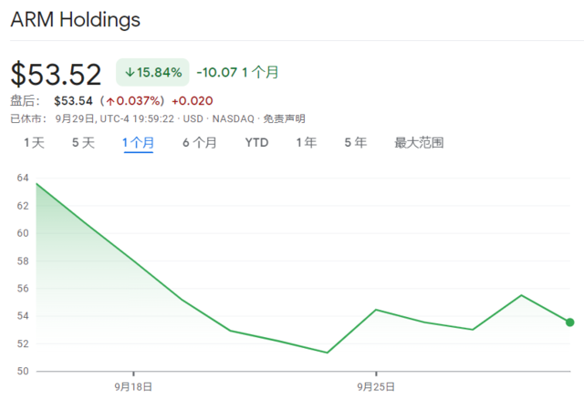作為今年全球最大IPO,Arm在上市後的兩周內,股價劇烈波動,時而高於發行價51美元,時而低於發行價,9月底比發行價高出5%。
