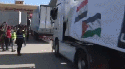 在拉法口岸開放之前,巴勒斯坦伊斯蘭抵抗運動(哈馬斯)在壹份聲明中表示,進入加沙的援助車隊由20輛卡車組成,車上裝滿“藥品、醫療用品和有限數量的罐頭食品”。