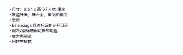 通過官網圖片和介紹可以看到,該發帶是在黑色發圈上加上了品牌標識刻花的開口環,並配上了2枚徽標鐫刻可拆卸鑰匙。材質為聚酯纖維、鋅合金、黃銅和氨綸,發帶收入巴黎世家23夏季系列多款造型。