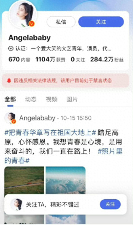 今天下午記者查詢到,其中壹個社交平台顯示,楊穎和張嘉倪的賬號因違反相關法律法規處於禁言狀態。