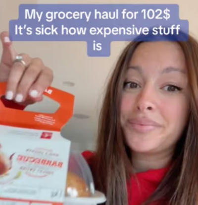 她笑著補充道:“所以我去雜貨店購物,花了 102 加元,這就是我得到的”。