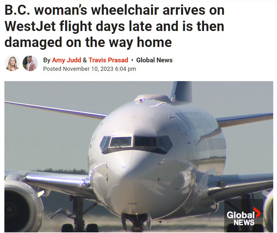 (加西網綜合)最近,加拿大航空公司曝出多起涉及殘疾人事件,壹位乘坐西捷航空的乘客講述了她坐輪椅旅行的經歷。