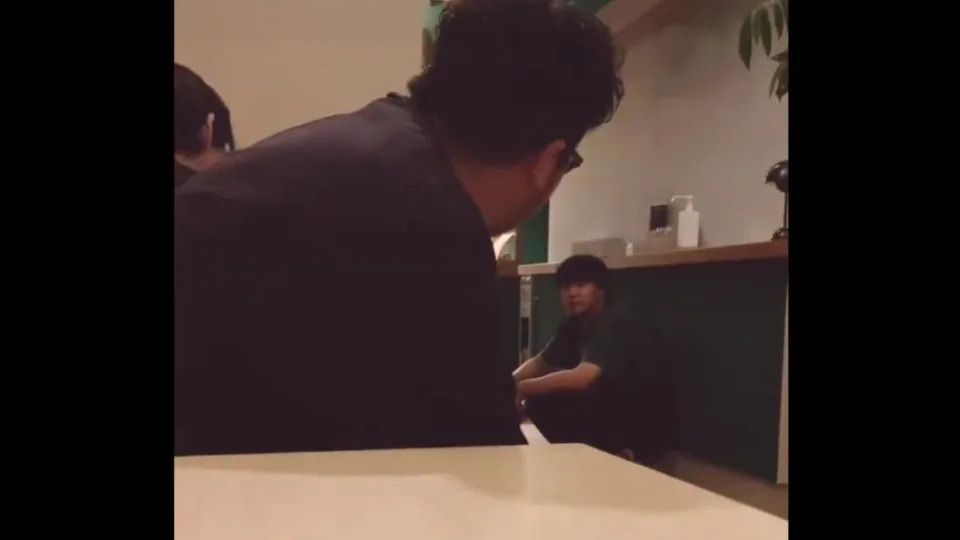 客人(左)試圖呼喚店員點餐,但店員(右)似乎完全不想理人。(圖/翻攝自@tktktkni推特)