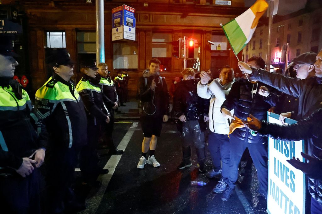 当局派出身穿防暴装备的警员到场,使用盾牌和警棍驱散群众。当局亦已暂停都柏林部份地区的巴士和电车服务,并呼吁民众保持冷静。