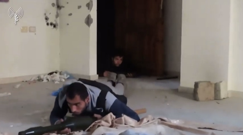 以色列國防軍公布了在加薩北部賈巴利亞戰斗期間,從壹名哈瑪斯身上拍攝到的影片,顯示該恐怖組織的武裝成員穿平民服裝,持武器在民宅內的地面上爬行。