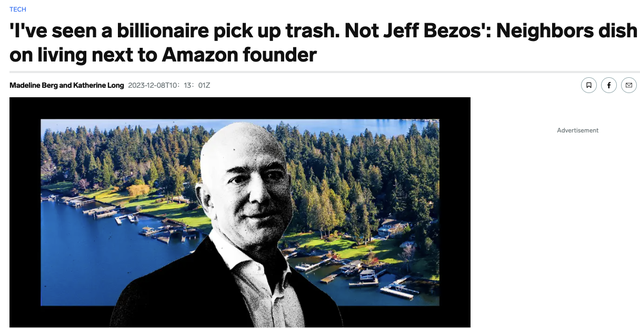由於在亨茨角居住的富豪眾多,與其他許多鄰居相比,貝佐斯的巨額財富似乎並不算特別引人注目,因此人們只關注到了他的缺席。