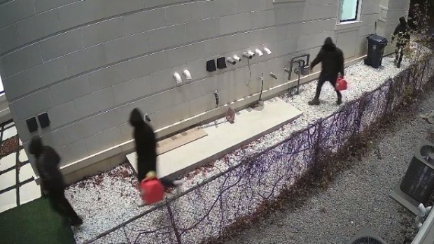 從鄰近房屋拍攝的監控錄像顯示,火災發生前,有人沿著豪宅的壹側奔跑,其中壹些人手持紅色氣罐,身穿黑色衣服。不久之後,視頻顯示壹輛汽車駛離該物業。