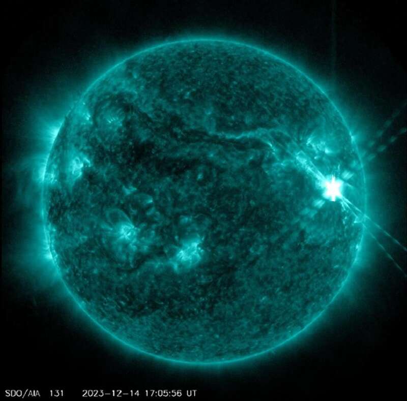 據空間天氣微信公眾號12月15日消息:北京時間15日01時03分,太陽活動區13514爆發了壹次強度為X2.8級的大耀斑。
