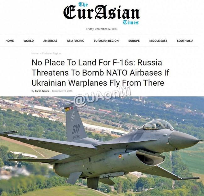 據”歐亞時報“報道,俄羅斯威脅稱,如果轉移到烏克蘭的F-16戰斗機從北約空軍基地起飛,俄羅斯將轟炸該基地。莫斯科已經警告稱,使用來自歐洲的北約飛機來對抗俄羅斯將使擁有這些飛機的國家成為“合法目標”。