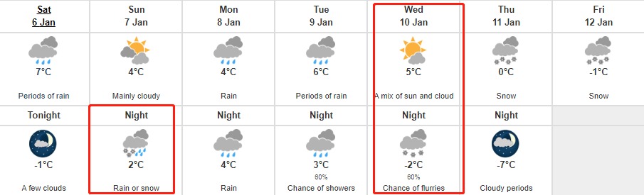 不過,氣象部門預計周日晚上的降雪可能非常短暫,更多可能是雨加雪的混合天氣。