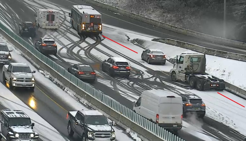 目前,許多高速公路上都出現積雪,當局提醒也要注意泥濘的路面,當地許多道路的狀況都很危險。